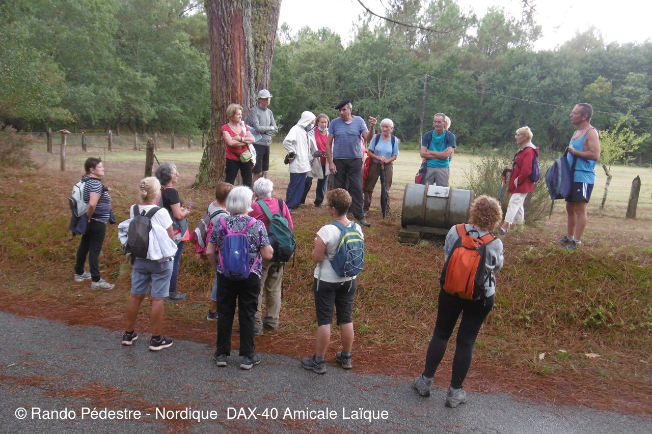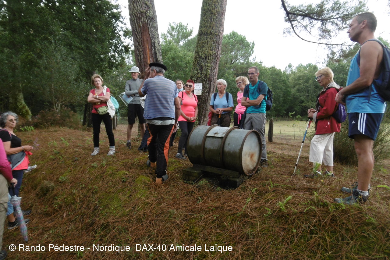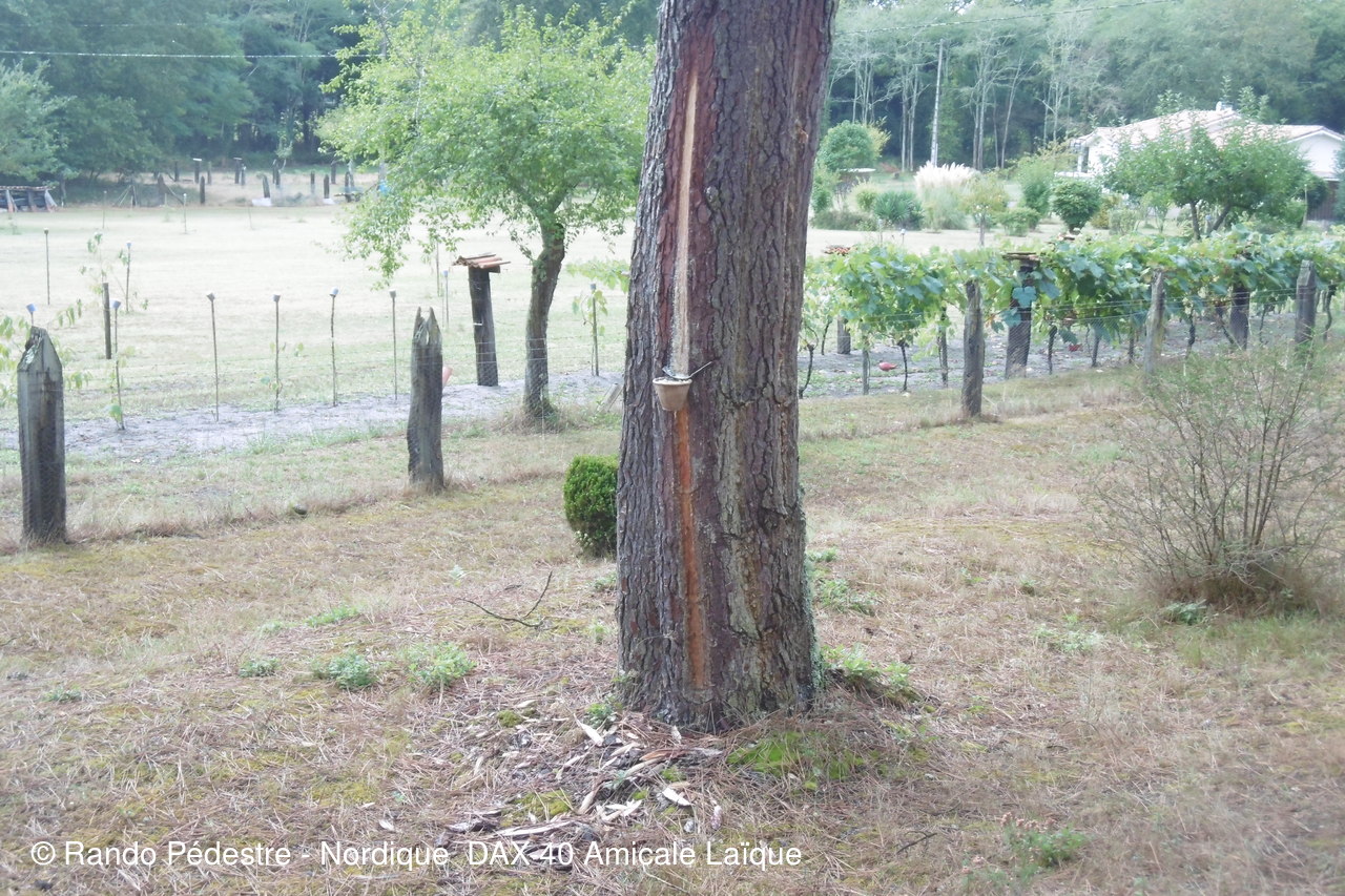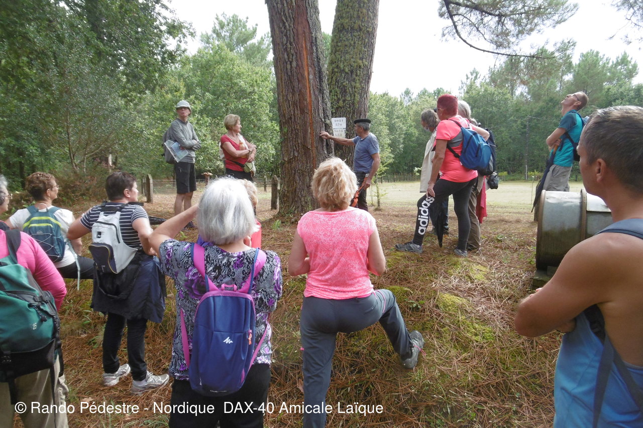 Météo mitigée au départ, à l'arrivée nous découvrons l aménagement d' un nouveau parking , s'ensuit une averse tres importante de courte durée, mais nous étions bien trempés , mais le temps s'est amélioré et les parapluies sont restés fermés jusqu'à la fin. Une halte à VIC, le proprietaire des lieux nous fait découvrir sa collection d'outils d'antan et nous donne une leçon sur le gemmage pratiqué il y a fort longtemps dans les Landes. Un moment fort apprécié des curistes et des adhérents.