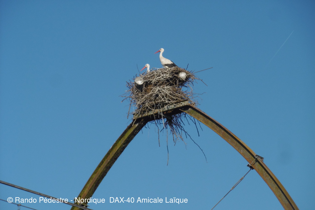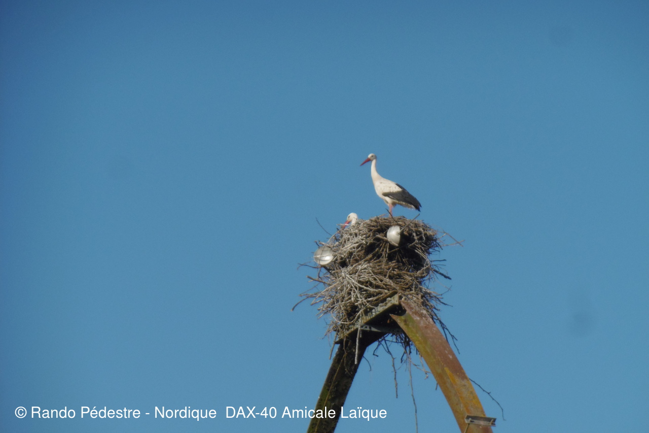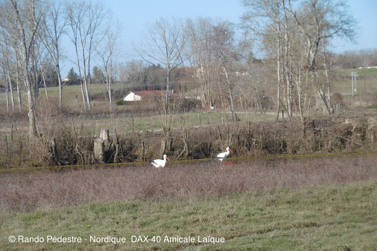Les premiers beaux jours ont pointé le nez, le circuit de RIVIERE était le plus compatible, les animateurs ont bien  fait  de reconnaître avant le jour J car effectivement dans ces barthes tous ceux qui y viennent pensent être chez eux, hélas non, puisque un arrêté a été pris pour interdire la circulation aux voitures etc.. et en même temps  des fermetures de "CLEDES" ont été remplacées par du barbelé quitte a faire passer les randonneurs  sur le passage réservé aux bestiaux pas très SECURITE  . Les cigognes sont déjà là .