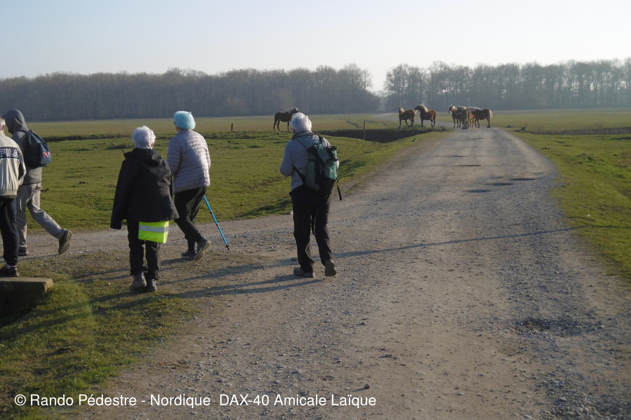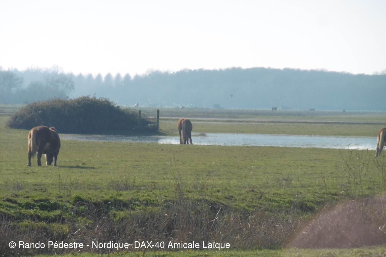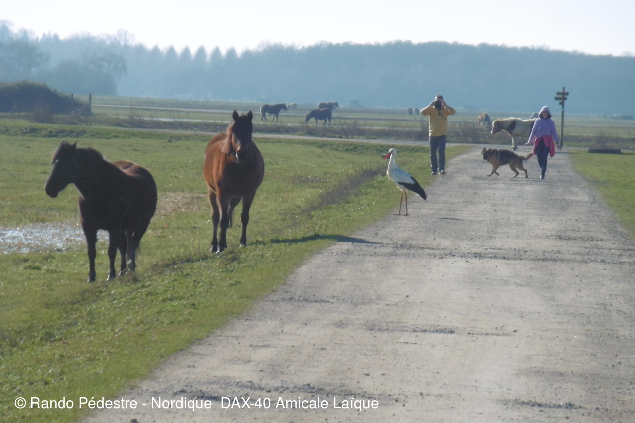 Les premiers beaux jours ont pointé le nez, le circuit de RIVIERE était le plus compatible, les animateurs ont bien  fait  de reconnaître avant le jour J car effectivement dans ces barthes tous ceux qui y viennent pensent être chez eux, hélas non, puisque un arrêté a été pris pour interdire la circulation aux voitures etc.. et en même temps  des fermetures de "CLEDES" ont été remplacées par du barbelé quitte a faire passer les randonneurs  sur le passage réservé aux bestiaux pas très SECURITE  . Les cigognes sont déjà là .
