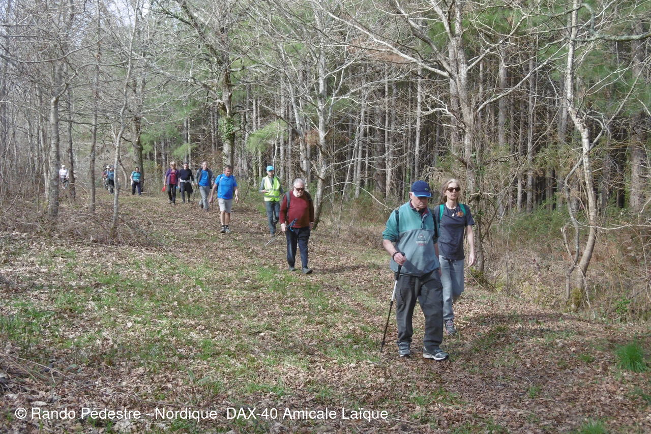 Les animateurs ont concocté un nouveau circuit sur les communes de MEES via ANGOUME, itinéraire très varié , montées et descentes, un lac, végétation très rare mais beaucoup d'arbres étaient recouverts de mousse, de belles plantes bien vertes , quelques primevères, et un observatoire qui nous a permis de scruter les Pyrénées au loin.