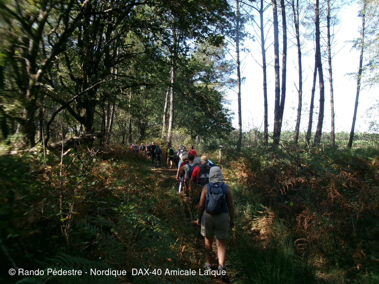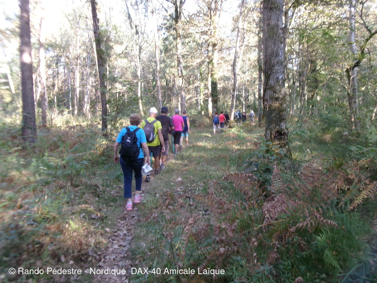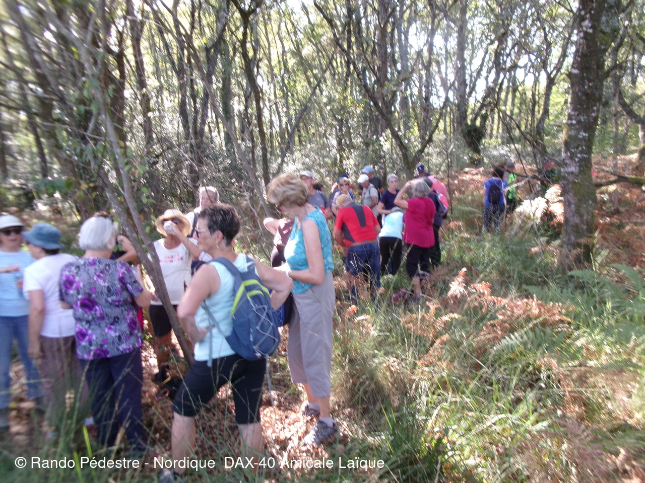 Le  départ de la rando était fixé à l'étang de Lacourbe à ST PAUL LES DAX,  pour un circuit  tout à l'ombre  et dans la forêt, vu  la température les animateurs avaient eu bon flair.