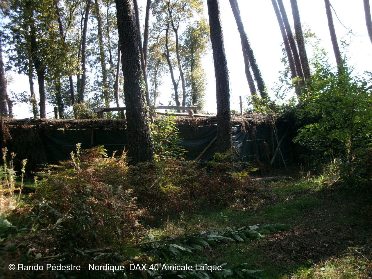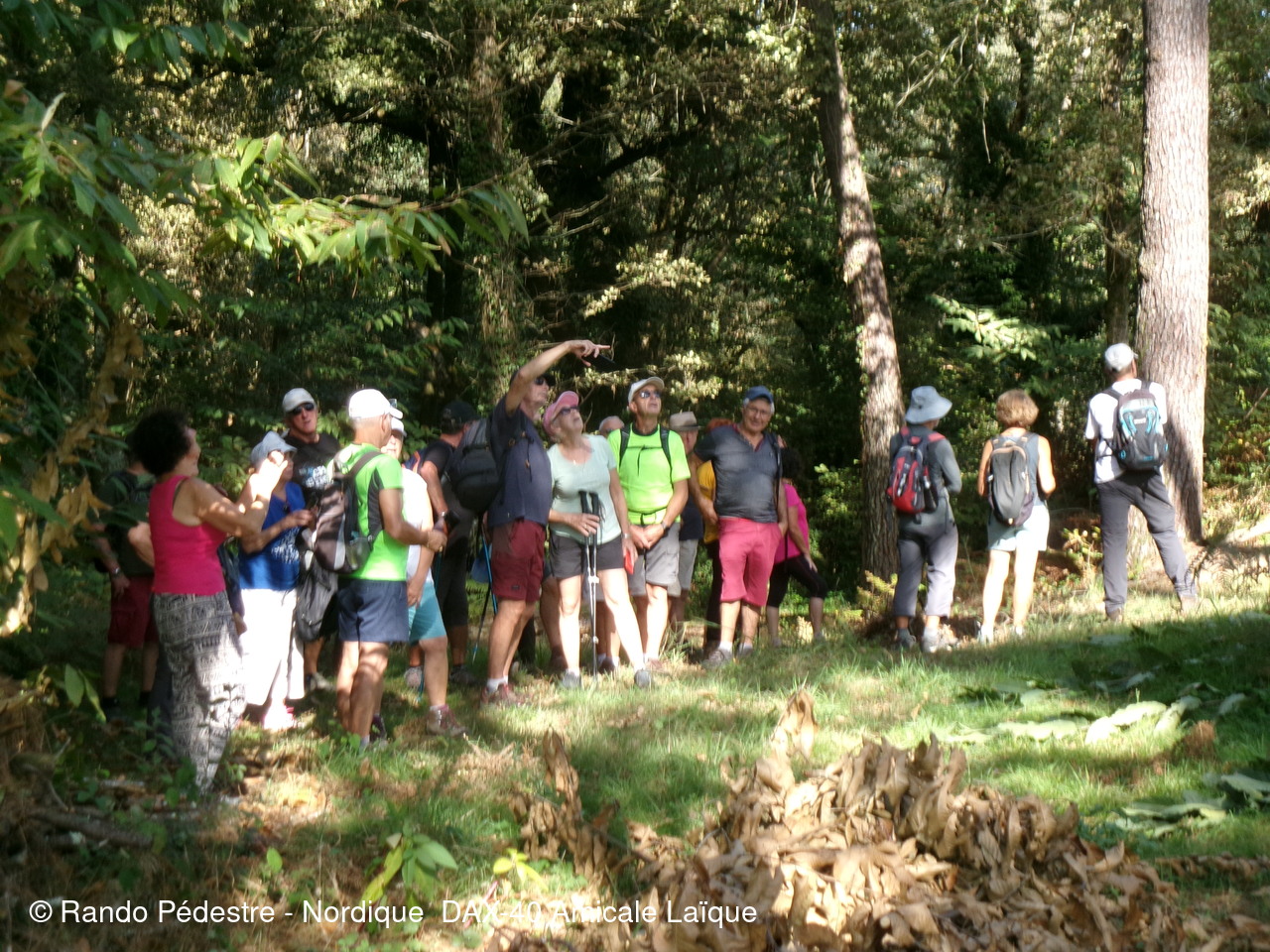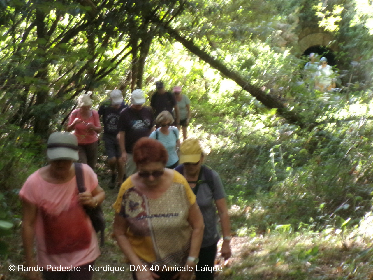 il faisait encore bien trop chaud pour cette sortie à domicile départ rue des chênes à DAX, puis descente vers les gravières et à quelques encablures en limite de la commune de NARROSSE est implantée on trouve une canalisation dans laquelle le sel extrait à ST PANDELON-40 arrive à l'usine "LES SALINES" quartier du gond à DAX et puis nous voilà sur le territoire de NARROSSE, découverte d'une palombière après avoir obtenu l'autorisation de son propriétaire de pouvoir s'approcher pour expliquer aux nouveaux adhérents et aux curistes comment se pratique cette chasse.Hélas très peu de passage de palombrs en ce moment.