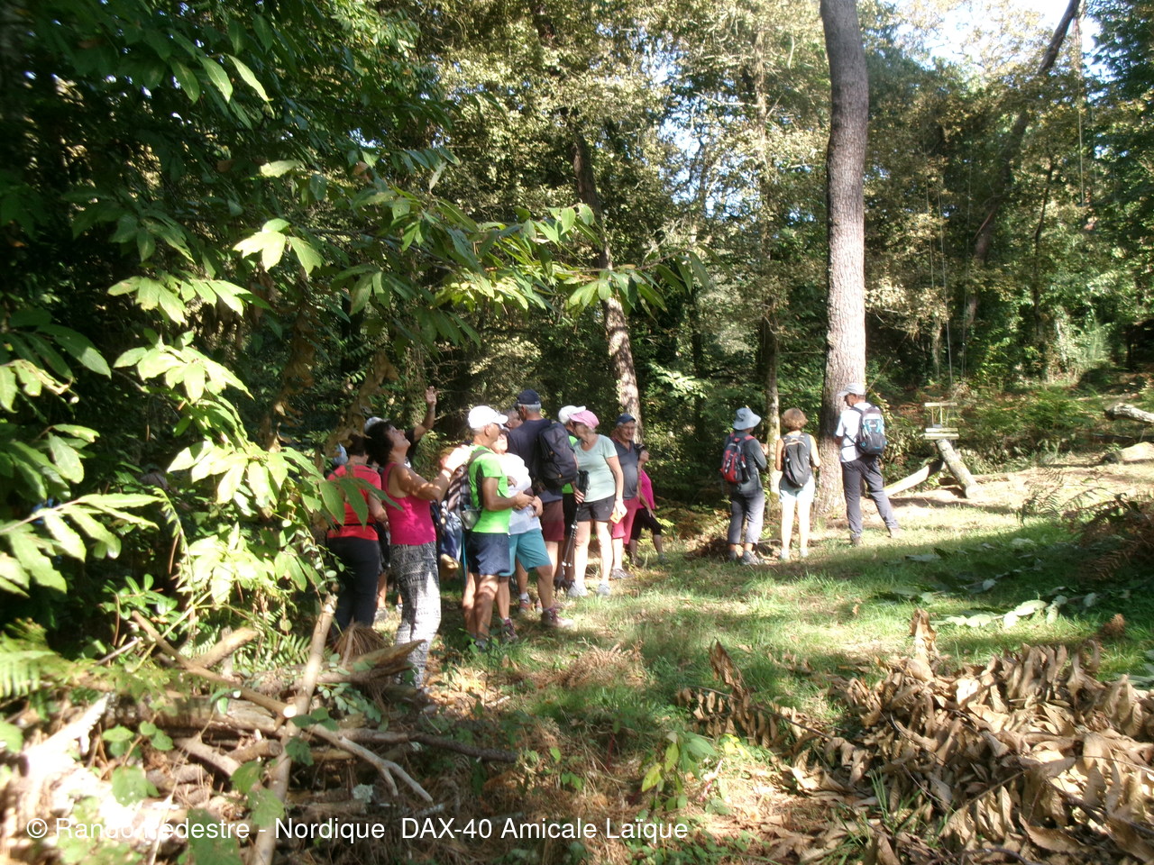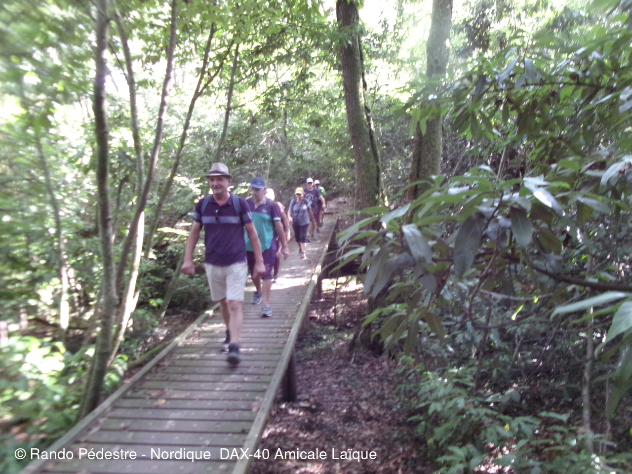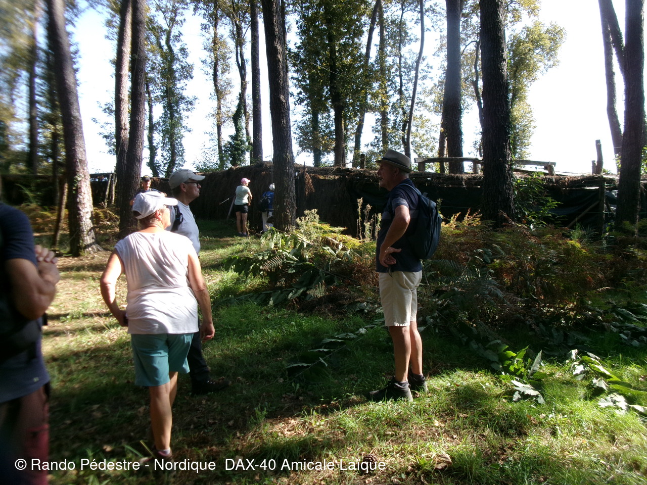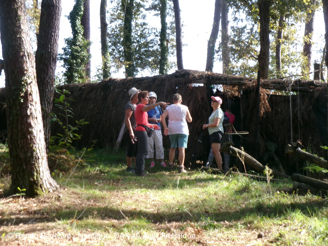 il faisait encore bien trop chaud pour cette sortie à domicile départ rue des chênes à DAX, puis descente vers les gravières et à quelques encablures en limite de la commune de NARROSSE est implantée on trouve une canalisation dans laquelle le sel extrait à ST PANDELON-40 arrive à l'usine "LES SALINES" quartier du gond à DAX et puis nous voilà sur le territoire de NARROSSE, découverte d'une palombière après avoir obtenu l'autorisation de son propriétaire de pouvoir s'approcher pour expliquer aux nouveaux adhérents et aux curistes comment se pratique cette chasse.Hélas très peu de passage de palombrs en ce moment.