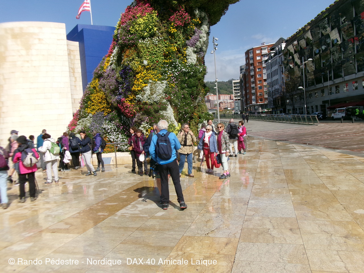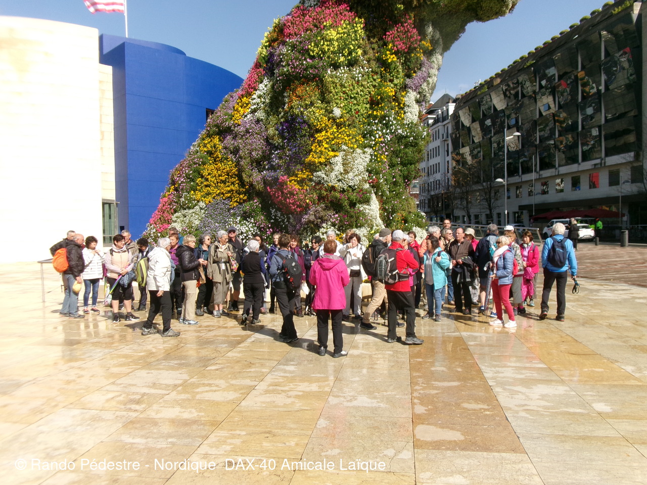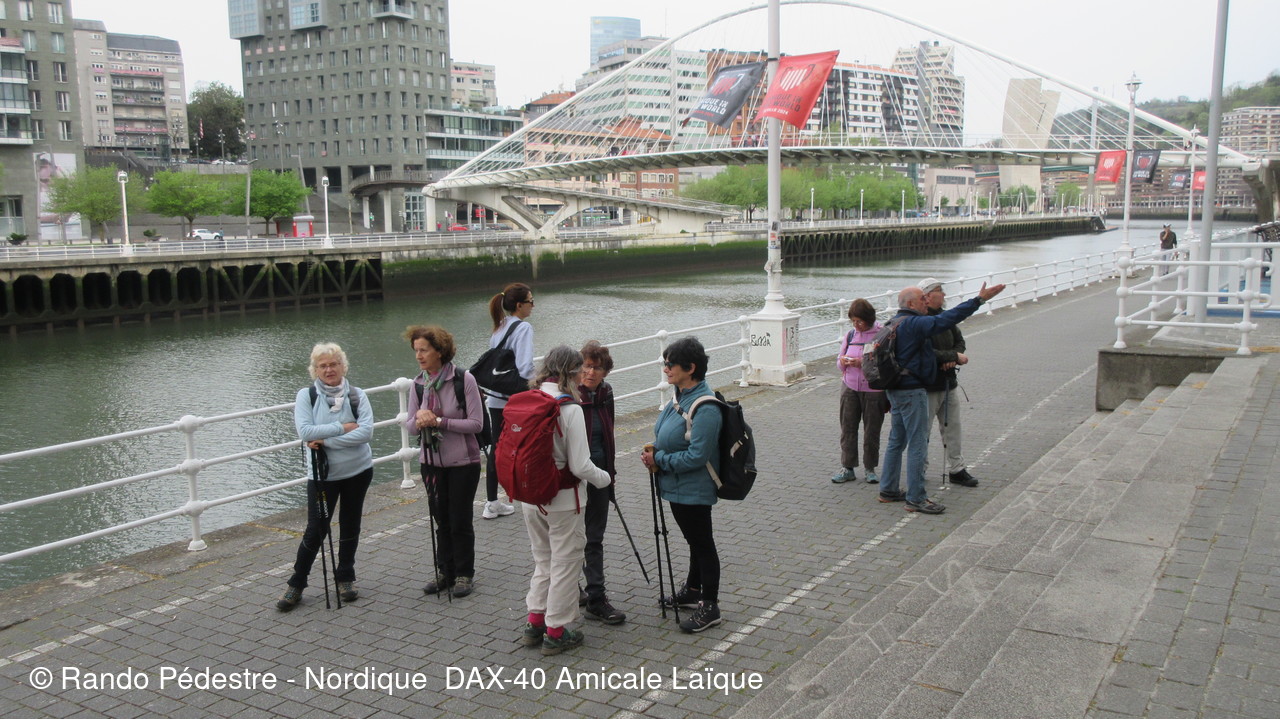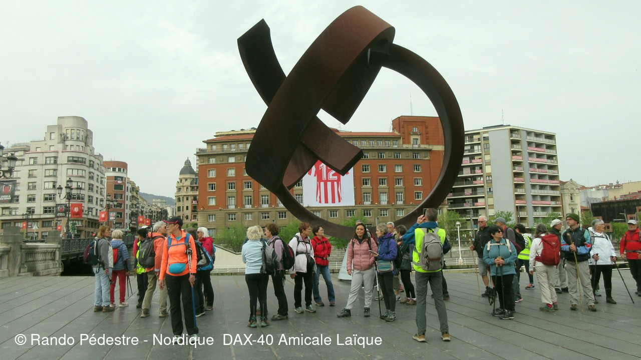 Les animateurs du groupe 1 ont pris le départ pour la descente , sous la pluie, et tous les participants se sont regroupés au pied du musée GUGGENHEIM BILBAO. Une oeuvre d'art remarquable.