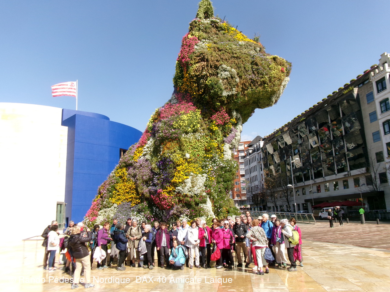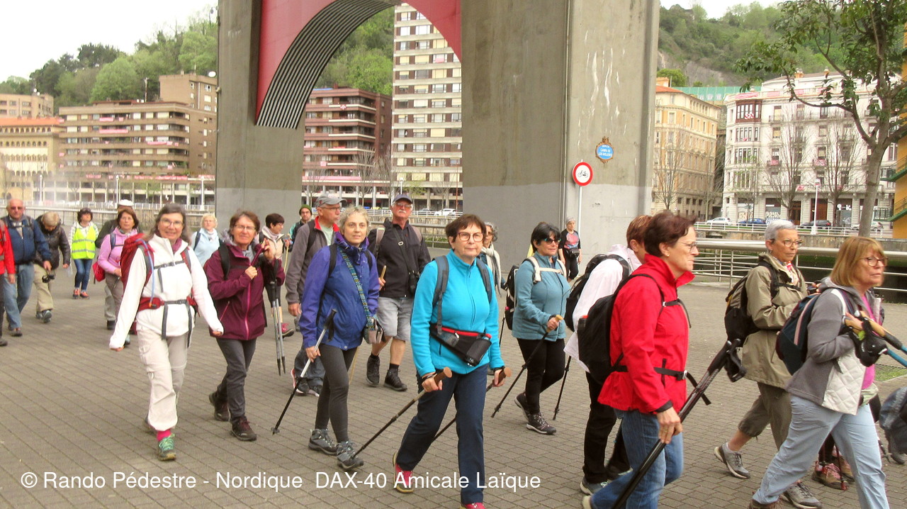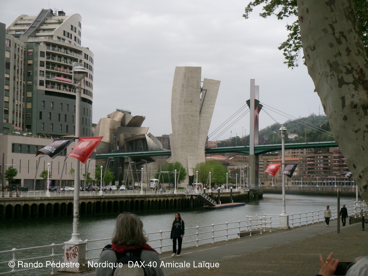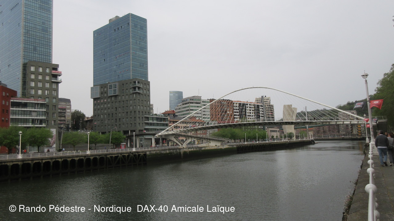 Les animateurs du groupe 1 ont pris le départ pour la descente , sous la pluie, et tous les participants se sont regroupés au pied du musée GUGGENHEIM BILBAO. Une oeuvre d'art remarquable.
